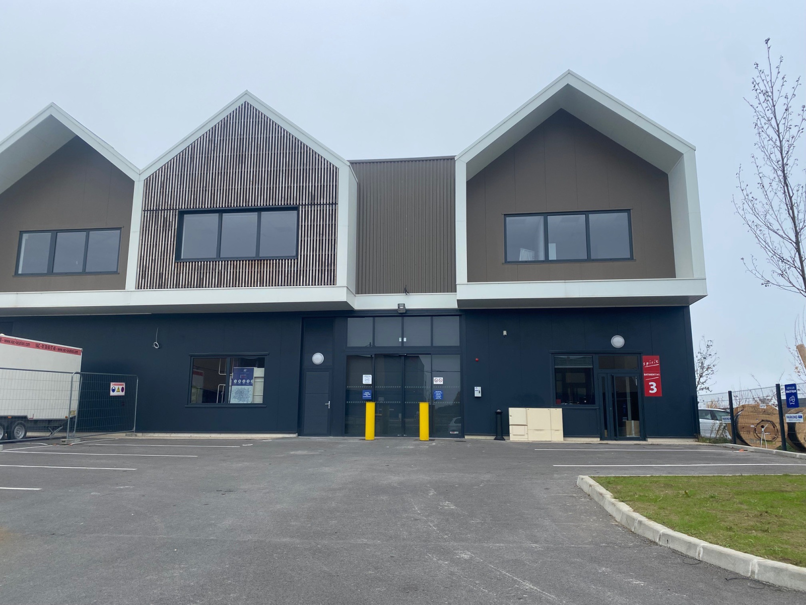 Suplombant l'A13 , Parc d'activités neuf de TB Standing avec possibilité de division à partir de 457 m² incluant 6 parkings extérieurs.